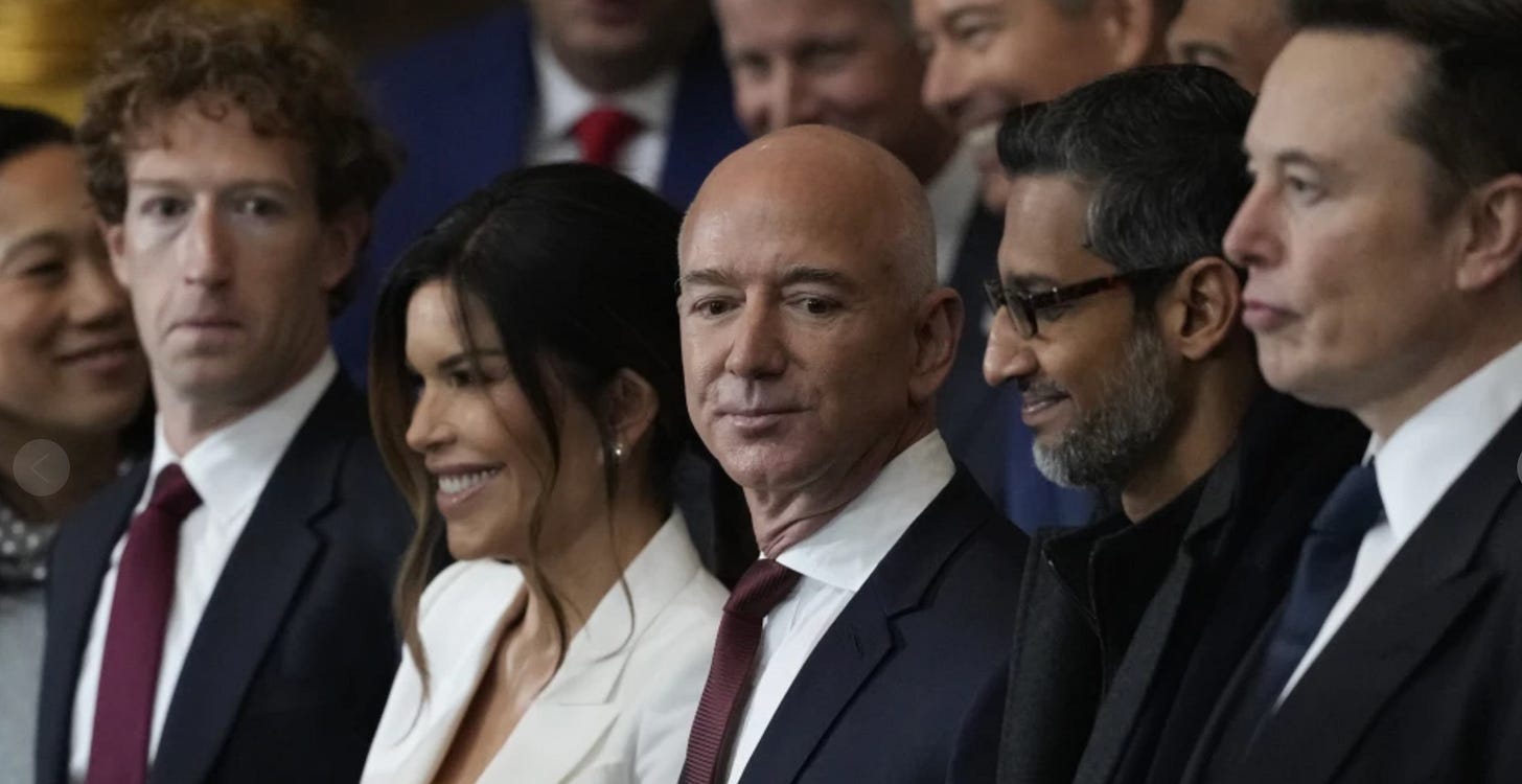 Anyways, these are my thoughts for today about the questions that occupy me constantly: Why are the richest people in the world casting their lot with this rube’s rebellion against the system that enriches them? What fuels a revolution against American institutions led by people (with apologies to Stephen Miller and a few other actual nazis) who have no vision beyond immediate gain and gratification?